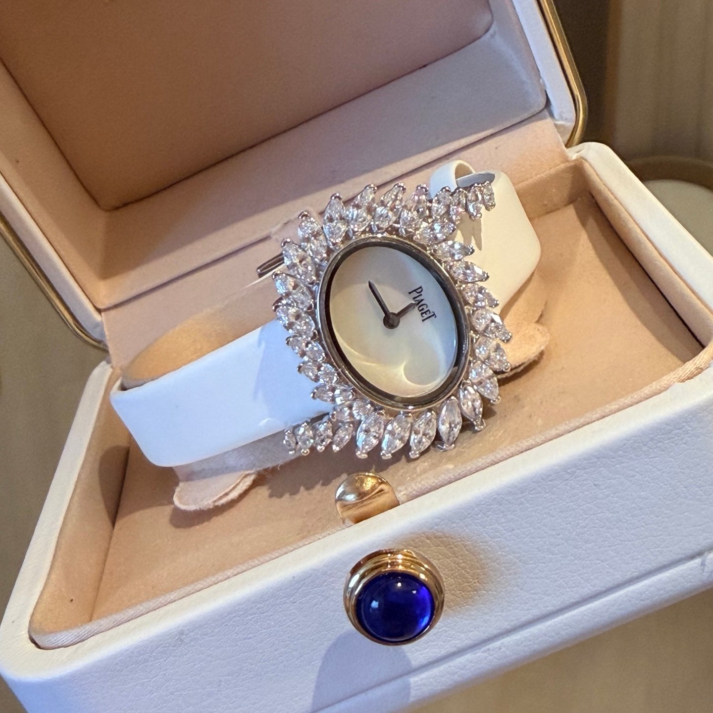This exquisite Piaget timepiece features an elegant gilded design adorned with luminous sapphires that capture the radiance of starlight, embodying unparalleled luxury in every detail; the […]