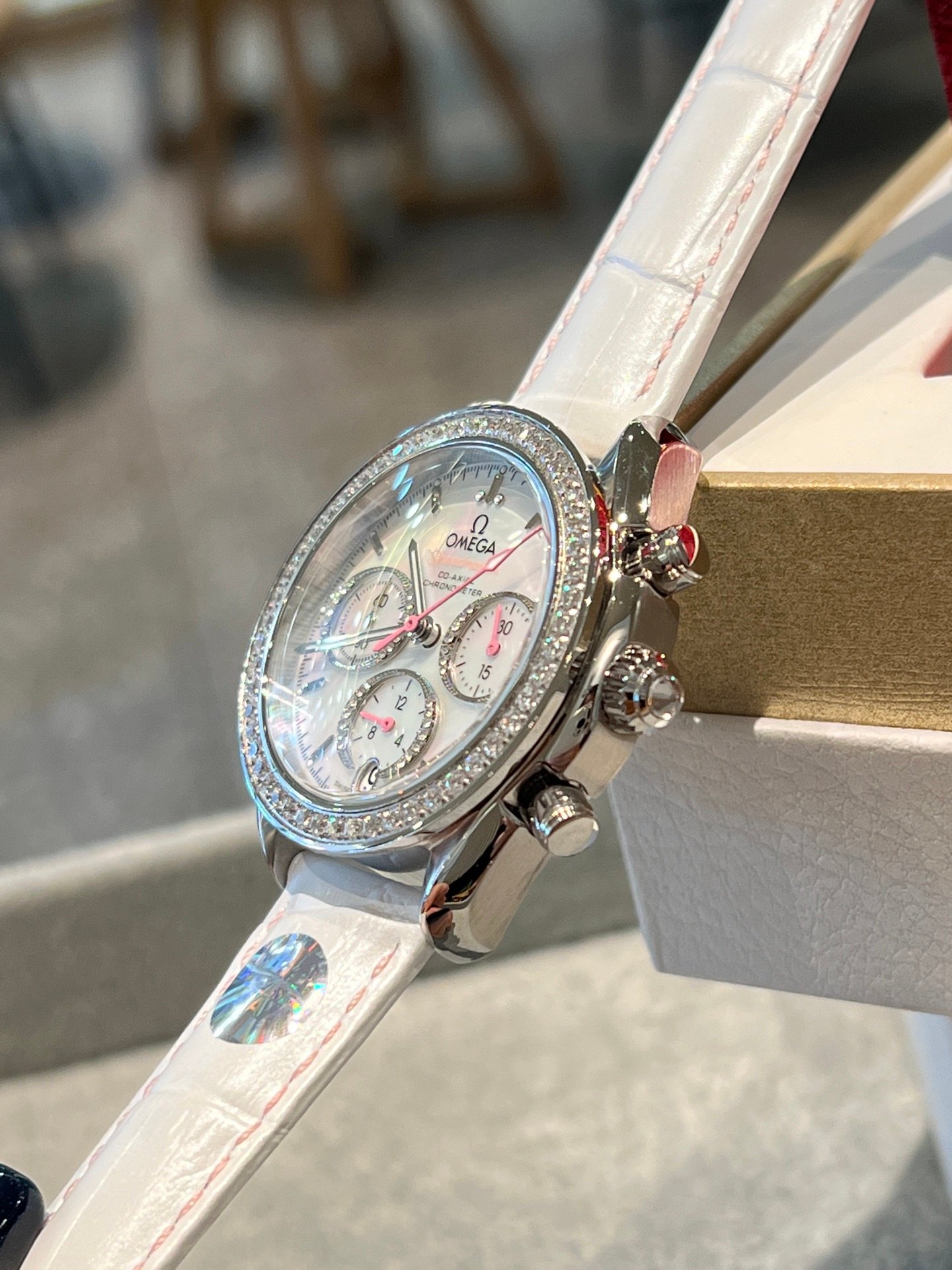 City Walk or CityDrink, Omega superstars are very city oriented. Super Ba’s new product is very top-notch!! The new Speedmaster 38mm chronograph watch has a variety of colors to choose from. In addition to returning to the small size, the eye-catching feature of the new product is that the bezel is no longer a speedometer scale, but is set with 52 bright cut diamonds. The crown and dial are also decorated with diamonds, and the entire watch is set with 97 diamonds, emphasizing a dazzling and luxurious temperament. Wearing the new Super King CityWalk, you can explore CityDrink at night in the pleasant atmosphere of stop and go, diluting life anxiety. Every frame of Omega Super King exploration carries a sense of city