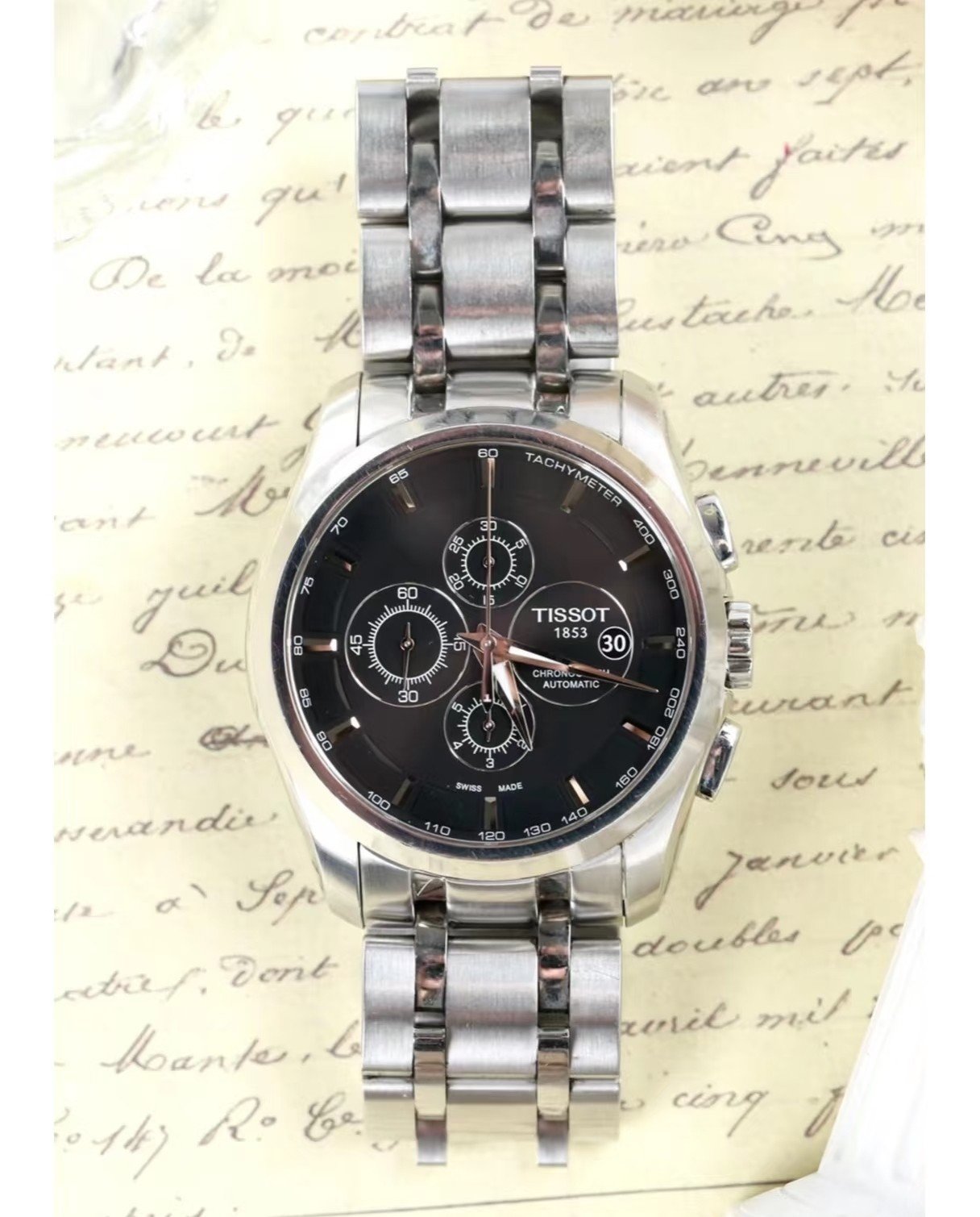 Tissot T035 Kuto series men’s watch, featuring a multi-function six-hand chronograph, is versatile for both business and leisure occasions